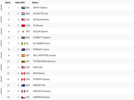 במקצה השלישי יופיי ז'אנג הסינית סיימה ראשונה עם 2:06.55, הקנדית בת ה-17 סאמר מקינטוש, שמחפשת מדליה אולימפית נוספת, סיימה שלישית עם 2:07.70.