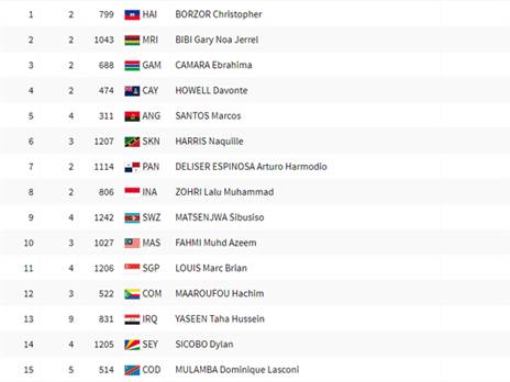 נאקיל האריס מסנט קיטס ומוחמד זוהרי מאינדונזיה סיימו בשני המקומות הראשונים בהפרש של 2 מאיות אחד מהשני, בדרכם לסיבוב הראשון ב-100 מטרים. צפו>>>