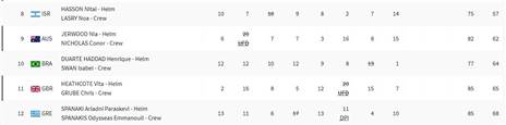 חסון ולסרי כרגע במקום השישי, עם 36 נקודות שליליות. בסיום עשרת השיוטים במוקדמות, 10 הזוגות הראשונים יעפילו ליום המדליות, שבו יערך שיוט אחד עם ניקוד כפול כאשר הניקוד מהמוקדמות יגרר איתם. את כל הפרטים על מה שנותר ללסרי וחסון תוכלו למצוא כאן