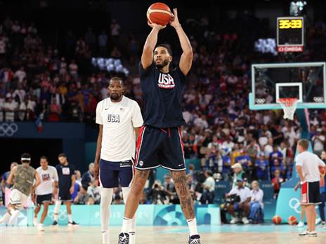55% מהנקודות של האמריקאים במחצית מגיעות משלשות (9/20 מעבר לקשת), ועוד ביום חלש של סטף ודוראנט שקולעים 4/11 יחד מהשדה. הצרפתים על 3/16 מעבר לקשת.