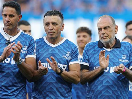 אברהם גרנט, בני קוזושווילי ורפי כהן שהיו חלק מאגדות העבר של הפועל פתח תקווה שזכו לכבוד לפני המשחק (אלן שיבר)