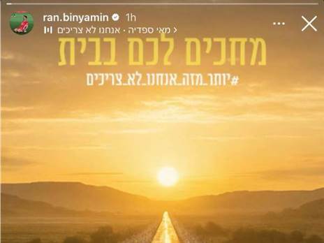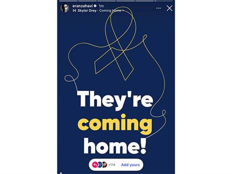 "מדינה שלמה שעומדת על רגליה עד לשניה האחרונה בה המשפחות יתאחדו עם יקיריהן. עם מאוחד שנלחם להחזיר את הבנים הביתה. לראות אותם כמו שהם, חוזרים עומדים על רגליהם, בגאווה. אריות שחזרו מהשבי אחרי שנתיים של תופת, שהסתכלו למוות בעיניים ולא נכנעו לו. אנחנו שמחים כל כך גם על שובם של שני אוהדי הקבוצה, רם ברסלבסקי ועכשיו אפשר גם להגיד – גם של אלקנה בוחבוט".