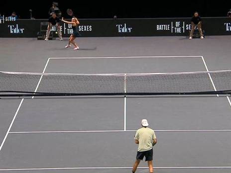 מצד ימין ארינה סבלנקה, מצד שמאל ניק קיריוס. שחזור של קרב המינים המפורסם מ-1973
