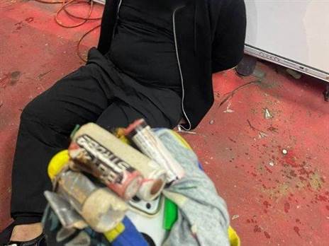 היחידה המרכזית ויס"מ ת"א עצרו חשוד שהוציא מתוך "סליק" בקיר בתא השירותים באצטדיון בלומפילד שקית ובתוכה 8 רימוני עשן צה"לים תקניים ו-17 אבוקות