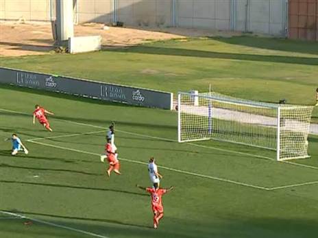 נתנאל טדסה הגביה לרחבה, מגן המארחת אורי מגבו דחק את הכדור לרשת בשער עצמי