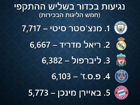מה שמעניין אפילו יותר היא השליטה של סיטי והיכולת שלה להגיע לאיזורים המסוכנים בקלות. הסיטיזנס מובילים את חמש הליגות הבכירות באירופה בנגיעות בכדור בשליש ההתקפי וגם ברחבת היריבות ומרחק הבעיטות הממוצע שלהם הוא החמישי בטיבו לצד ברנטפורד ולייפציג, כפי שניתן לראות בשלושת התרשימים הבאים: