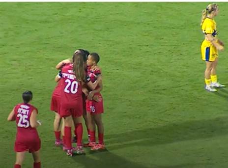 גם סגנית האלופה עדיין במאזן מושלם, וזאת בסיומו של משחק שנפתח לאחר כחצי שעה של עיכוב, מכיוון שהמארחת לא הגיעה לשריקת הפתיחה עם רופא. על הדשא, החניכות של צח שמרוני שוב הרשימו, עם שערים של שירה אלינב, דוריס באודווה וסמדר כהן, כשגם קשרית הרכש קרול קרדוזו הבריזלאית, עלתה מהספסל להופעת בכורה.