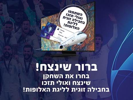 4.2 הפרס לזוכה: חבילה זוגית הכוללת טיסה + מלון + כרטיסים כניסה לאחד המשחקים מליגת האלופות.